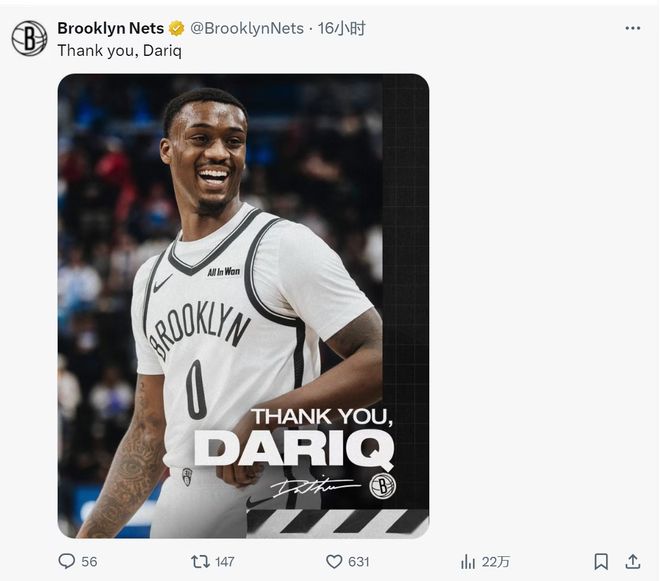布鲁克林篮网队突然宣布裁掉2023年首轮22号秀达里克·怀特黑德,这一决定震惊了整个NBA。这位年仅21岁的前“全美第一高中生”在篮网仅仅效力两个赛季后就被放弃,篮网将支付他2025-26赛季的330万美元保障薪水,同时放弃执行2026-27赛季536万美元的球队选项。