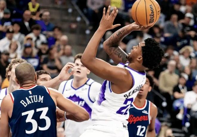 比赛一开跑,两队完全对不上速度节奏,爵士一方体力充沛,快船则明显迟缓无力,攻防两端都缺乏足够侵略性。