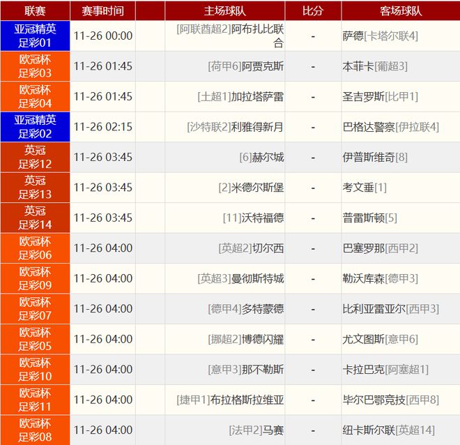 其他赛事比分:
