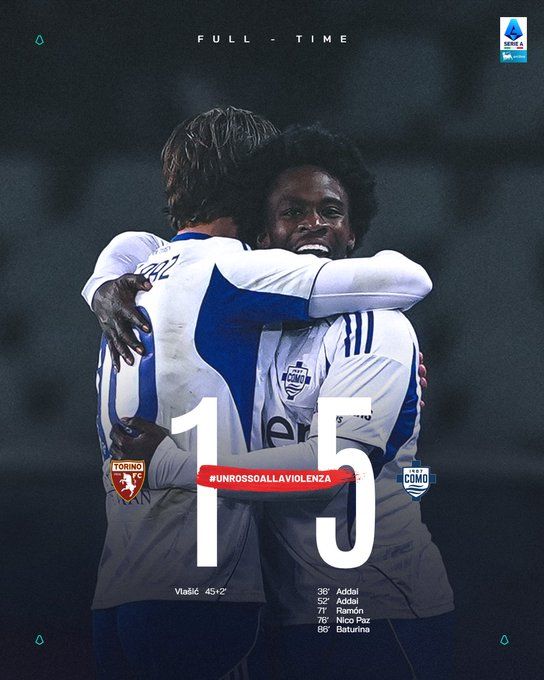 北京时间11月25日01:30,意甲联赛第12轮,都灵坐镇主场迎战科莫。上半场,阿达伊接赫苏斯-罗德里格斯助攻完成破门,弗拉希奇主罚点球命中,为都灵扳平比分。半场双方战平1-1。易边再战,阿达伊,哈科沃-拉蒙与尼科-帕斯先后破门,比赛末段,巴图里纳锦上添花,攻入一球。全场比赛结束,都灵1-5不敌科莫。